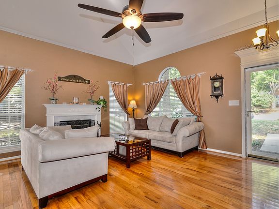Don't miss this one! Two story living room with a gas fireplace. Wood floors throughout the main. BRAND NEW KITCHEN; beautiful ceramic floor, new cabinets, new solid surface counters! Master on the main with an attached bath featuring dual sinks, garden tub, separate shower, new tile floor and walk in closet. Walk in attic storage and a walk in crawl space with a new moisture barrier. New HVAC in 2014, new water heater in 2013, new architectural roof in 2010. Industrial sink in the garage. Flat, fenced yard. Washer, dryer, fridge remain!