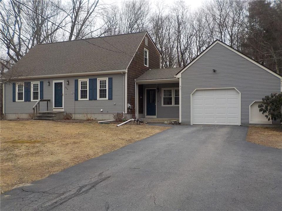 Great sized cape with full shed dormer offers new hardwoods in both of the good sized bedrooms on the 2nd level. Newer replacement windows. Freshly painted interior, newer high efficiency heating system, hardwoods in the front to back living room with wood stove and formal dining. French door to tiered deck off the den with cathedral ceiling. Even more space in the finished lower level with bar & walkout to 1.66 acre wooded lot. Oversized attached garage. This house has been well cared for!