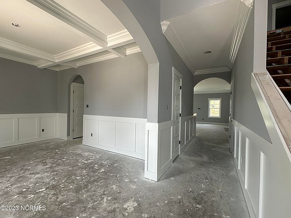 Welcome home the Wilmington floor plan by Holbrook Homes, located in the coastal community of Summerhouse on Everett Bay. With 3486 square feet of living space and a main floor owner suite, this remarkable home is sure to be at the top of your list. Featuring large, spacious rooms, and a main living area that is perfectly suited to entertain. The living room features high ceilings, a gas fireplace with slate surround, a floating mantle, and an eye-catching shiplap accent. Flowing into the kitchen, you'll find white custom kitchen cabinets, stunning fantasy brown granite, white tile backsplash, stainless steel appliances, a pantry, and more! The main floor also features a formal dining room decorated with wainscotting and coffered ceiling, a mudroom, a powder room, and a the spacious owner suite with walk-in closet and beautifully tiled walk-in shower. As you make your way to the second floor you'll find three additional bedrooms, two with a jack-n-jill bathroom, a bonus room or office, another guest bathroom, and linen closet. Throughout the home, you'll find finishes such as crown molding, LVP and tile flooring, recessed lighting, and so many more textural finishes, for the finest coastal living. If you enjoy the outdoors, you're sure to enjoy countless moments on the covered back porch, along with all the various amenities offered within the community. Summerhouse on Everett Bay features unsurpassed community amenities, including an exquisite clubhouse, resort-style pool, community gym, fire pits, playground, tennis courts, walking trails, pavilions, boat storage, boat launch, and day docks with ICWW access. This is truly an opportunity to own your own piece of coastal paradise! Schedule your tour today!