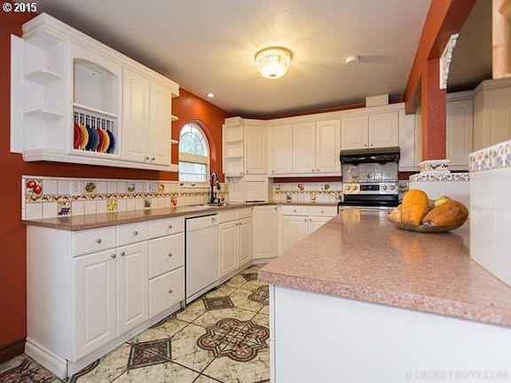 Beautiful, well maintained large open floor plan, tastefully updated with modern Spanish style finishes. Large master bedroom with bath and huge walk in closet. Spanish tile floor throughout, high end kitchen upgrades including stainless steel appliances and commercial quality dishwasher. Beautiful fenced yard with tons of patio space for entertaining. Very convenient access to I-5 and walking distance from the Woodburn Outlet Mall.
