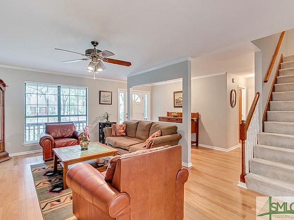 Paradise Awaits! Tranquil park-like setting surrounds you as you enjoy the beautifully landscaped grounds with mature trees and garden paths. The front wrap around porch will make you just want to sit and enjoy the views. Inside you will find gorgeous wood floors and modern colors. Lovely added touches throughout including a custom wood mantle and a completely updated kitchen with island, ample cabinetry, Viking commercial fridge and new stainless appliances. The roof is only 2-3 yrs old and 2 newer HVAC units. Main floor master suite with a bay window and two closets is just right to relax in. Two additional spacious bedrooms with a shared bathroom complete the upstairs. At the end of the day make sure to take time to read a book or host a gathering in the screened porch. The community offers a large open area with covered picnic area and playground. Minutes from the heart of Richmond Hill, Savannah, beaches and more!