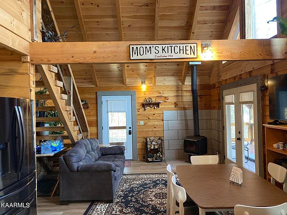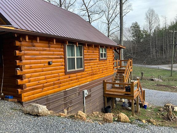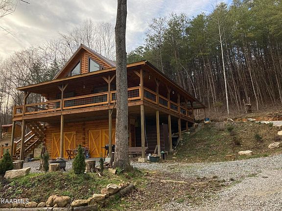 RENTAL INCOME! You must see this mountain log house at the edge of Tellico Plains. Relax in the open living area or on the spacious wrap around covered deck. A huge upstairs loft is perfect for a sitting room, office, craft room, or sleeping area. Cozy up by the warm wood stove. Walk along the creek running through the property or one of the 2 springs. Basement level has a workshop and a storeroom. Property includes 1 room AirBNB or VRBO rental or guest house . (sight prepared for second rental.) City water and TDS internet. All furniture stays except downstairs refrigerator, freezer on Porch, and 1 TV.
