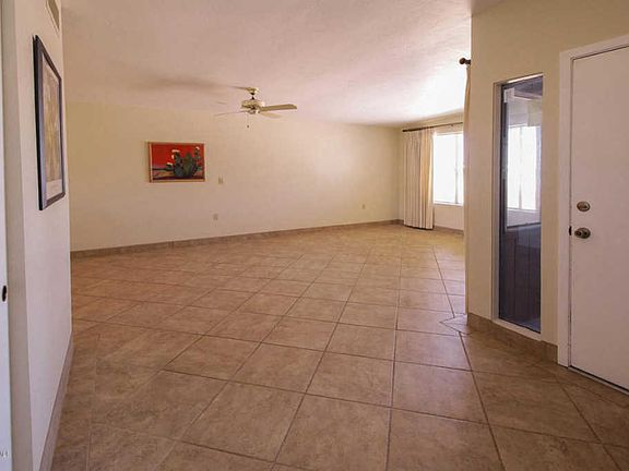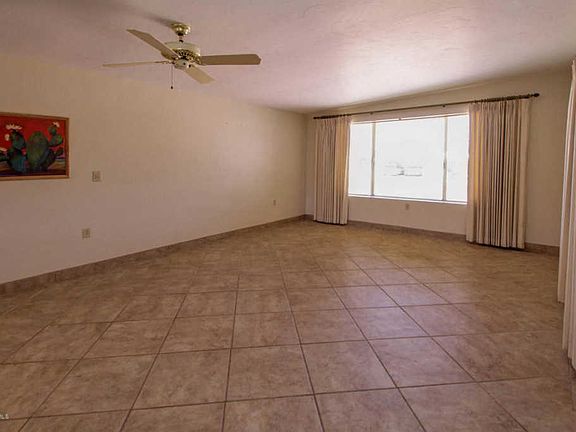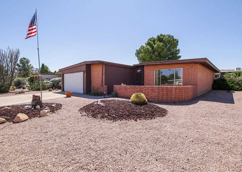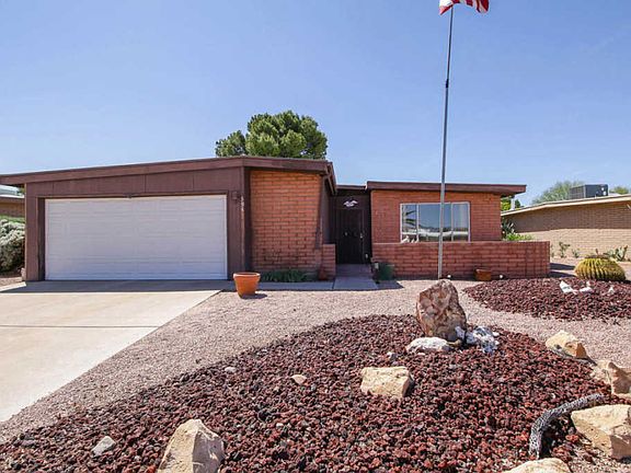 This home is vacant and ready for a new owner. Tile floors w/tile baseboards throughout. 2 bedroom + den/bedroom (has closet but no entry door to den/bedroom), 2 car enclosed garage + storage room. Backs to an alley/common area for privacy from neighbor to rear. VIEWS of the Santa Rita Mountains from the living/dining rooms plus the front courtyard. Being sold ''As Is'' although home is in good repair. Priced to sell!!