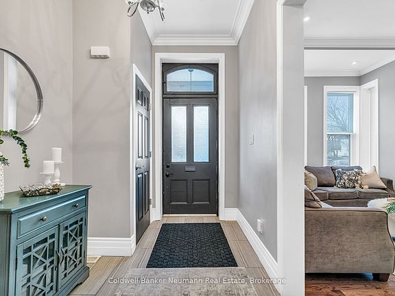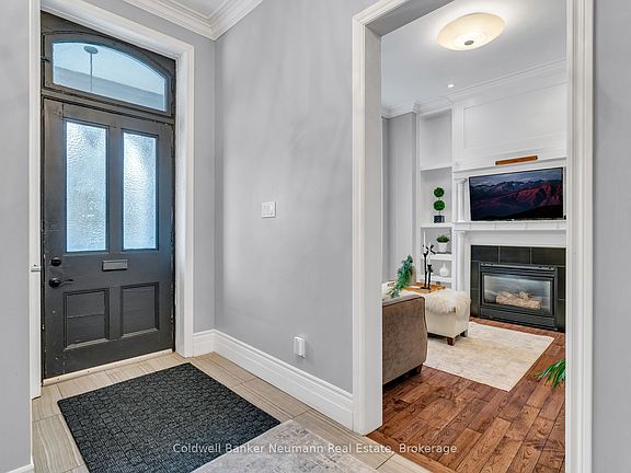 Charming and Versatile in Exhibition Park. 394 Woolwich Street a beautifully updated yellow brick century home located on the corner of Woolwich and Tiffany Street W, in the heart of Guelphs sought-after Exhibition Park neighbourhood. Fully renovated just 10 years ago, this timeless 2-storey home blends historic charm with modern functionality. Outside, the paved driveway offers parking for six vehicles, while the professionally landscaped patio and covered back porch provide private, low-maintenance outdoor living spaces perfect for entertaining or relaxing. Step inside to 10-foot ceilings and a warm, inviting living room featuring a gas fireplace framed by custom built-ins. The living area flows into a bright, functional kitchen ideal for both family life and hosting. A standout feature off the kitchen is the versatile rear room with separate exterior access and a 3-piece bath. A perfect space for a home business, Airbnb suite, fourth bedroom, or additional sitting/dining room. With office-residential zoning, the options are endless. Upstairs, you'll find three spacious bedrooms, including a light-filled primary bedroom with ensuite privilege to a stylish 4-piece bathroom.Perfectly positioned just steps to Exhibition Park, downtown, schools, and transit, 394 Woolwich Street offers flexibility, character, and location all in one tidy package.