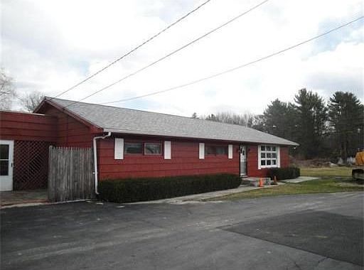 Spacious Ranch w/3 bedrooms, big eat in kitchen, new modern tiled bath w/separate tub & shower. Big screened in area, big open deck, above ground pool. Separate building used for garage/storage/workshop/stable. Great for different professions. Set on 6.34 acres of land. (2.66 acres is in Acushnet). Home is set back off of street.