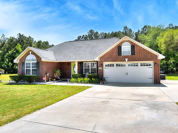 Beautiful one story home sitting on .75 Acres and backing up to the woods, features 3 bedrooms and 2 full bathrooms. Hardwood floors can be found in the living and dining room. Kitchen has all stainless steel appliances that will convey with the sale of the home. Both Kitchen and bathroom vanities have granite counters. Several fruit tress such as Peach, Plum, Apple, Persimmon, Pecan, Lemon and Pear tree can be found in the backyard. Home also has Well water for the irrigation system. Storage shed in the back, Interior/exterior cameras and monitor will all stay. Nice extra parking pad on the side of the home.