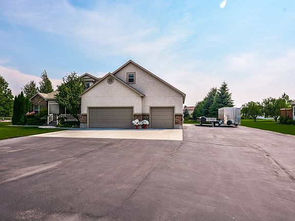 This stunning, custom home is beautifully constructed on a large 1-acre lot on the quiet outskirts of Rigby. A gorgeously designed kitchen caters to your inner chef. Boasting custom cut granite countertops, designer cabinets, faux brick wall treatments & stunning hardwood floors, this wonderful space will ignite culinary magic! A luxurious main floor master suite gives way to a private bath oasis featuring a large walk-in closet, sprawling granite top, dual-sink vanity & tile-surround jetted tub that sits separate from a stand-up shower. This space is truly designed to provide every desired convenience for your personal relaxation. Hosting a crowd? The bonus room on the upper level supplies endless space for establishing a dream media room, home gym or designated man cave. Outside the large backyard oasis offers views of the stunning landscape to be enjoyed from the elevated deck or covered patio, while a secluded in-ground firepit rests in the center of established trees & just behind a coveted workshop/shed. Additionally, this amazing property supplies ample parking space for trailers, boats & rec vehicles. Even the most discriminating buyers are sure to be smitten with the elegance and unique craftsmanship found in this dream residence.