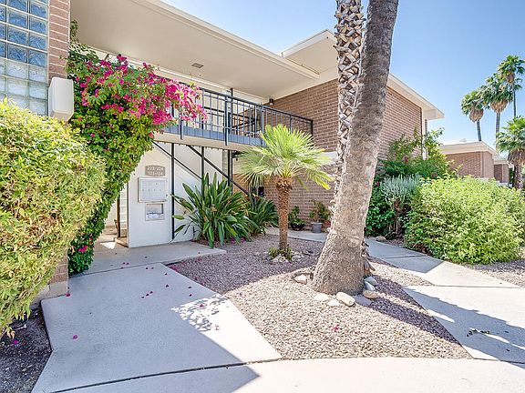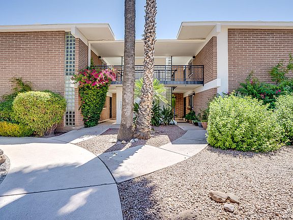 The seller will accept/counter offers $160-$170k Seldom available, this Eden Roc Gardens condo is a freshly updated and spacious 3bd/2ba 2nd-floor unit with a perfect location, close to everything and right across from Reid Park. Mid-century modern style and convenience abound in the well-maintained complex. A real tiki-fountain, in-condo washer/dryer, sparkling pool with lava rock waterfall, and shared garages all within lush landscaped grounds! The floor plan has great flow with an expansive & bright great room, long balcony, updated kitchen and bath vanities with Corian counter-tops (w/ Shoji-screen pocket doors), and many storage options incl. walk-in closets. Newer carpet and tile floors, recessed lights, ceiling fans, and neutral colors mean this condo is move-in ready! Hidden gem that offers resort-style living right in the heart of Tucson.