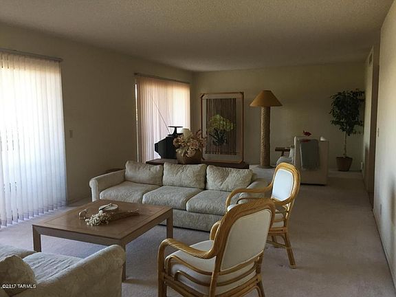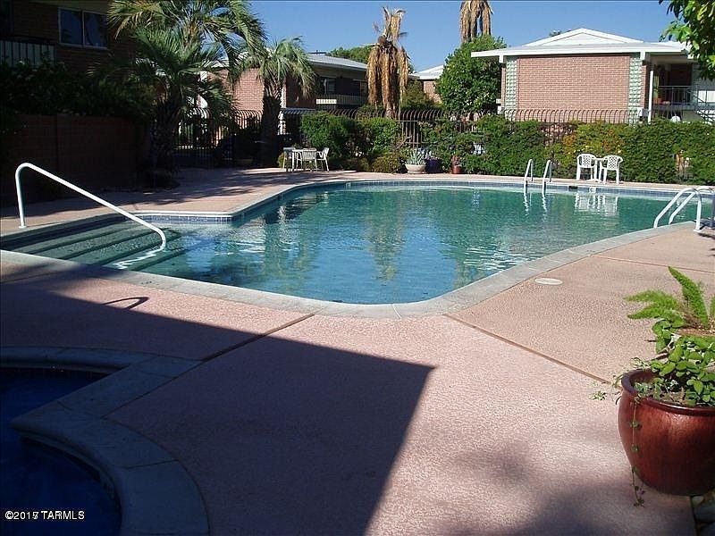 Very 70s cool - Mid-century condo LIGHT and BRIGHT! North-facing balcony extends length of condo and is perfect for having a morning cup o' Joe - or an evening cocktail! Mst bedroom with slider door to balcony and bath with dressing area/tub and TWO large closets. 2nd bdrm with en-suite bath/shower. Ceramic tie in entry, kitchen, hallway & baths. Inviting common area with recently remodeled pool/spa and ramada - perfect for entertaining! Shared, enclosed garage close to unit. Eat-in kitchen - LOADS of storage! WELL KEPT community - residents involved with HOA as well as Copper Rose Prop. Mgt. Location is convenient to EVERYTHING! Walk to Reid Park, shopping, restaurants - Eden Roc is SPECIAL! Come check it out! HOA paid washer/dryer by ramada. Credit for new carpet in liv & mast bdrm..