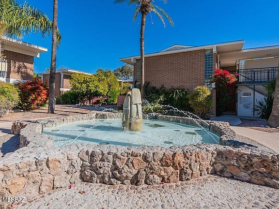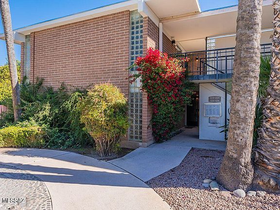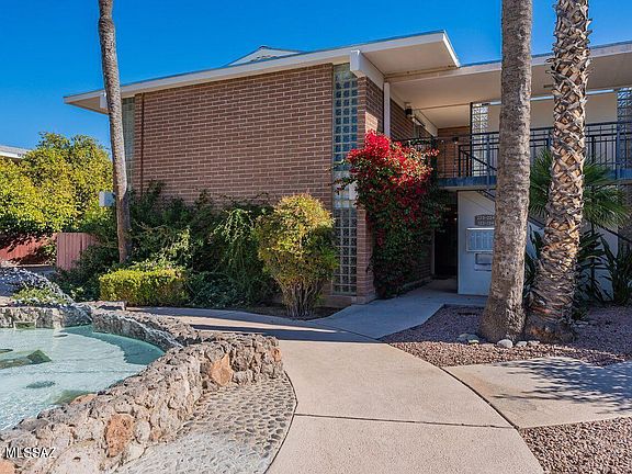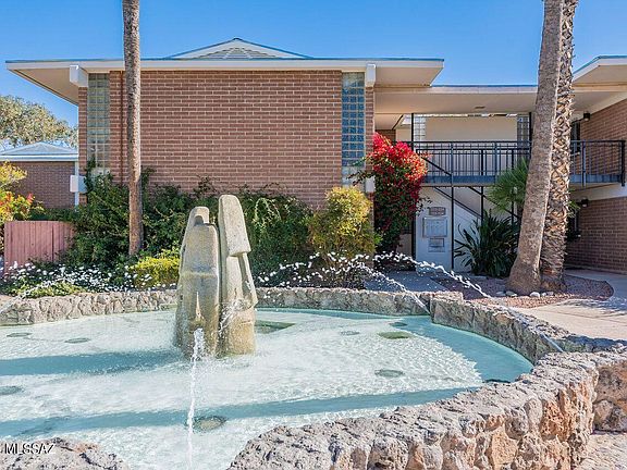 Nestled in the vibrant heart of Tucson, this 2 bedroom, 2 bathroom mid-century modern condo presents a distinctive blend of historical charm and contemporary convenience. Designed in the 1960's by Swaim & Cook Architecture Firm, the building is a unique blend of split face block construction and glass block. The landscape plan was originally crafted by Warren Jones, FASLA, a landscape architecture professor at University of Arizona.The condo itself is a masterpiece of mid-century design, featuring clean lines, open spaces, and large windows that invite natural light to flood in, creating an airy and welcoming ambiance. The living space is elegantly laid out, ensuring comfort and style are in perfect harmony. The kitchen, a sleek and modern space, comes equipped with stainless steel appliances, offering the perfect blend of form and function. It opens out to a spacious dining area, making it ideal for entertaining guests or enjoying quiet meals.. Residents will find the building itself to be a part of Tucson's rich history, with its well-preserved architecture telling a story of times past. The Moai Tiki Head fountain as a focal point of Eden Roc Gardens and also marks the entrance of the unit. The community is friendly and welcoming, reflecting the diverse and vibrant spirit of the city. The convenience of this location cannot be overstated. Whether it's a morning jog in Reid Park, attending classes or events at the University of Arizona, exploring the culinary delights of local restaurants, or enjoying the nightlife of downtown Tucson, everything is just moments away. This condo is not just a home; it's a lifestyle choice for those who appreciate history, design, and urban living at its best.