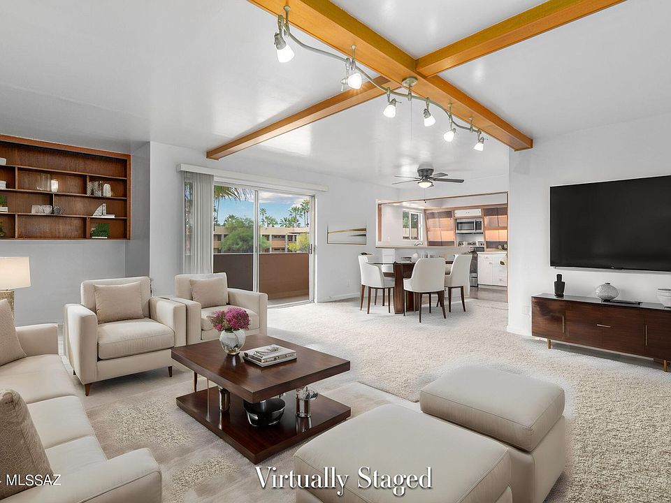 Fantastic, move in ready condo located perfectly in Central Tucson with fabulous Catalina Mountain views. Easy walking distance to shopping, restaurants, golf, Reid park zoo, walking paths, tennis courts. So much to offer in this perfect location. This second story condo has just enough of the charm from when it was originally built to give you an idea of the luxury that came along with living here in the 60's. The upgraded bathrooms and kitchen along with all new appliances, new carpet and painted throughout...It really is a must see!!! Lots of storage in the condo along with more storage in the shared GARAGE!! This condo would make a fabulous rental or vacation home.