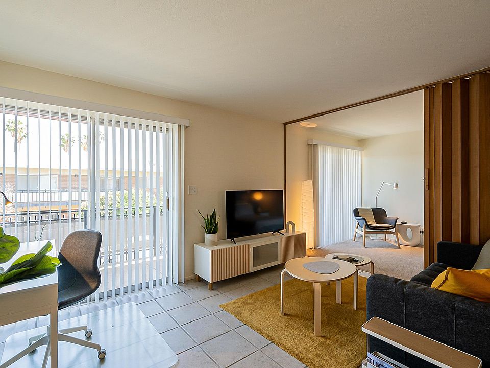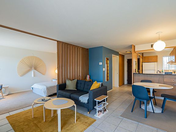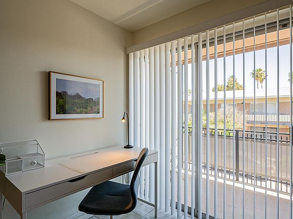 Great Central location close to the U of A, Banner Health, Reid Park, and restaurants. Beautifully fully furnished and updated 2nd-floor Mid Century Modern condo with secure garaged parking/storage, on-site laundry, tons of closet space, skylight, spacious balcony, and views of the Catalinas as you come-and-go! The open and bright floorplan has an authentic 1960s vibe w/ Japanese-style Shoji screens, sliding room divider, updated white kitchen appliances, Berber carpet in the bedroom, and tile floors throughout. Also included are a 4k 50" HDTV, Alexa Dot, and a Nest smart thermostat. The quiet lushly landscaped grounds feature a sparkling pool w/ lava rock waterfall, and an authentic tiki fountain. Lease lengths are flexible; 3, 6, or 12 months. $1400/mo. for 12-months, $1500/mo. for 6-months, $1600/mo. 3-months (all utilities included at this lease term). Shown ONLY with an acceptable rental application via Zillow.com. Available now! Lease lengths are flexible; 3, 6, or 12 months. $1200/mo. for 12-months, $1300/mo. for 6-months, $1500/mo. 3-months. The owner always pays for water, sewer, and garbage/recycling. Tenant pays for electricity, gas, and internet, however, for shorter lease lengths, ALL utilities will be included in rent.