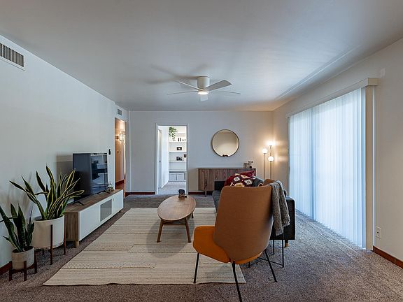 FULLY-FURNISHED Mid-Century Modern second-floor luxury condo, with 3BR/2BA + 1 car garage space and additional off-street parking available. Centrally located across from Reid Park. Spacious and modern! Several upgrades in this quiet desert oasis include a large single-basin kitchen sink, full-size over-the-range microwave, and dimmable LED light fixtures. The kitchen has LED track lighting, Corian counters, a deep basin sink, and a full-size Samsung steam washer/dryer. The dining area features built-in storage. The third bedroom/office is bright and airy, with built-in bookshelves, perfect for remote workers. The full-length covered balcony has outdoor furniture and a corner privacy screen. Other features include numerous walk-in closets/storage space, a Nest smart thermostat, a 55" 4k TV, a sparkling pool w/ lava rock waterfall, and a tiki fountain. Close to the El Con Mall, Randolph Park, golf & tennis, U of A, Banner Health, and restaurants. Lease lengths are flexible: 3, 6, or 12 months. Available now! Rent includes water, sewer, garbage/recycling, gas, landscaping, pool, and exterior building maintenance.