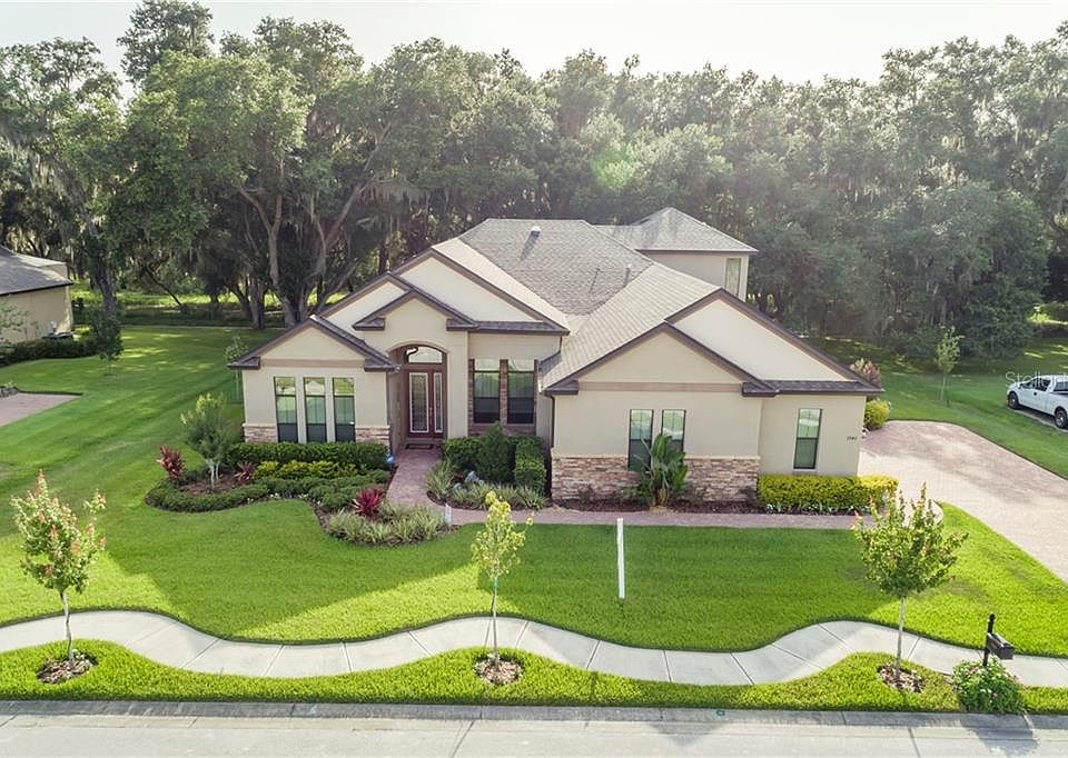PRICED REDUCED $50,000! This is the showplace you have been waiting for. Owners paid builder to enlarge home by 4 feet all across the back to make the Master Suite, Kitchen, Family Room, Bonus Room and Guest Suite extra spacious. From the time you enter the lushly landscaped front entry and stroll past the spacious dining room through the family room and into the gourmet kitchen with sky high cabinets, dual self cleaning ovens and luxurious Quartz countertops on the large Island, sink top and cook top to get a better view of the amazing entertainers 17X20 dream rear screened patio with it's custom built granite top bar and oversized hot tub/Spa that overlooks the custom Firepit under the amazing Grandfather Oak Trees you will feel the tranquility of this spacious home. Take time to visit the bonus room upstairs and imagine watching your favorite team playing their big game while you relax in your favorite easy chair. Don't forget to check out the large Master Suite with separate garden tub and spacious shower, twin walk-in closets and sliding doors onto the patio where that bubbling Spa is waiting to help you relax. If you have a lot of toys you need to keep secure the massive 3 car+ garage just might be exactly what you are looking for. Put this home on your must see list before you make any final decisions. Call for a private viewing. Homes like this are hard to find.