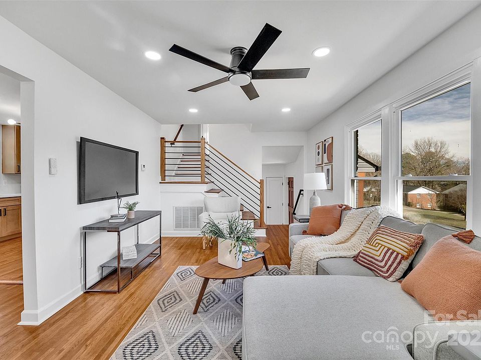 This stunning mid-century home is renovated top to bottom with modern and luxurious touches to make this a perfect oasis or welcoming place to entertain. The lower level boast modern polished tiled floors with a more privately located bedroom and full bath, perfect for in-law quarters or elegant home office. Natural wood floors throughout upper levels, with new designer kitchen cabinetry, quartz counters, and designer finishes throughout home including designer light fixtures, kitchen pot-filler feature and all new stainless steel appliances. Luxurious backlit vanity mirrors and luxury showers systems in all three bathrooms. New roof, new HVAC, new water heater, new paint throughout and all new windows! A stunning home from entrance to kitchen.