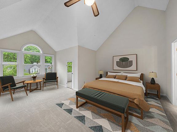 Walk to Lake Johnson! Wonderful townhome with unique floor plan featuring two primary suites, one up and one down. This home is ideal for roommates, or multi-gen families. Real oak hardwood flooring in main living areas. Vaulted ceiling for light, bright interior. White kitchen cabinets with granite counters. Refrigerator included. All-new neutral interior paint! All-new vinyl windows with screens! Huge upstairs bedroom suite with lots of light and spacious bathroom. Wooded rear view. Large deck. Outside storage closet. Fenced yard; bring your pets. Walk-in attic storage. Two dedicated parking spots, plus adequate overflow parking. Fantastic West Raleigh community minutes from NC State. Walk to greenway trails, Athens Drive High School and public library.