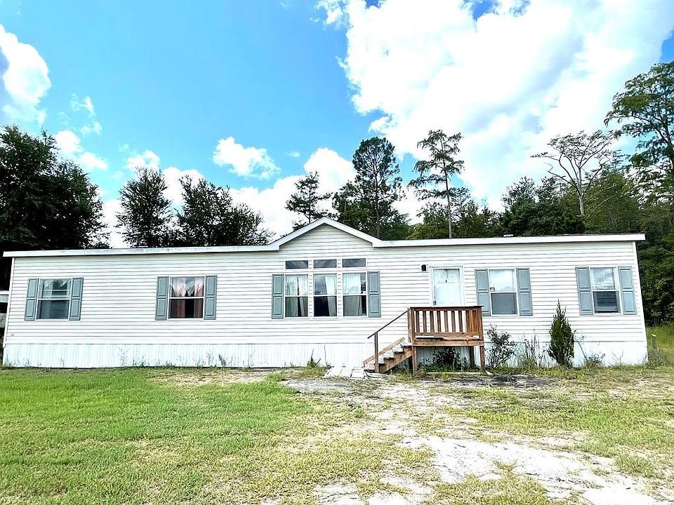 Walking into this lovely mobile home it greets you with a very spacious open floor plan. This home features 2048 square feet, with a large living room and open kitchen with a dinning room. The kitchen features a very large island with sink, and an unique stainless full size freezer and full size refrigerator that sits side by side. The master wing of this home features a large master bedroom and very spacious master bath, which has shower, jetted tub and very large walk in closet. On the other end of the home you will find two more spacious bedrooms a full bathroom and very large laundry room along with the side entrance to the home. This home sits on 4 acers of land with trails leading around the property full of wildlife .