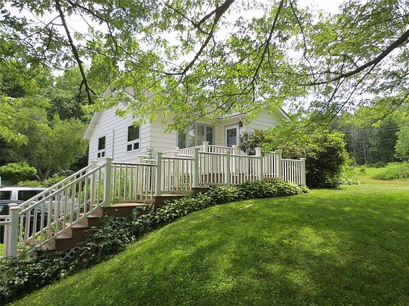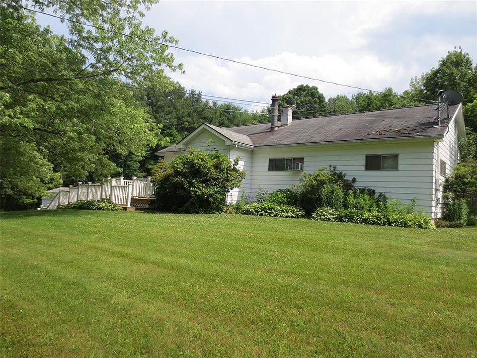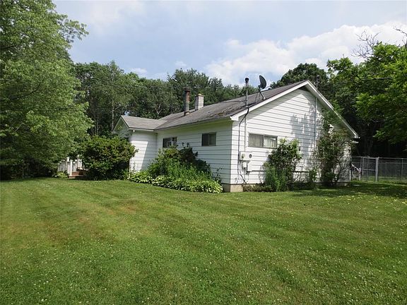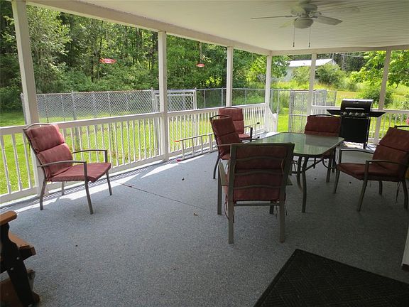 Country Ranch on over 10 beautiful acres just minutes to town. Sit back and enjoy the wildlife on the inviting big back porch. The updated kitchen flows into a full dining room with open woodwork that leads to a bright living room, lots of natural light. Newly updated and expanded bath with walk in tiled shower, extra space and storage and washer and dryer. Some windows replaced, newer flooring in living area. 30 x 14 outbuilding with electric, concrete floor and a/c was used as a dog kennel for boarding. Whole house generator and newer Dunkirk boiler. Garage was converted to a home office/bonus room. Fenced Dog run off the back porch. Basement is huge and lots of possibility to expand the square footage.