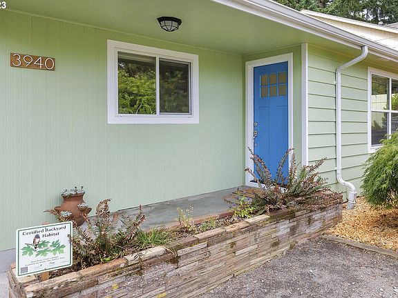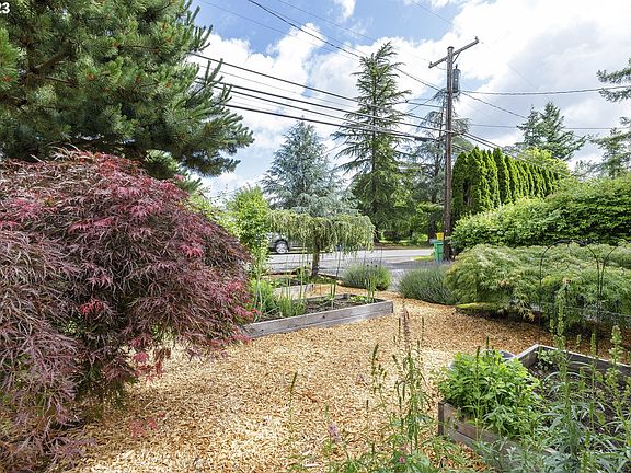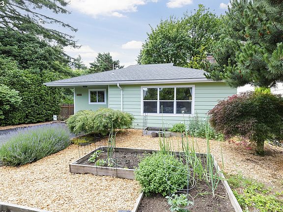 Darling mid-century ranch with many updates on a level, fully fenced and private lot, bordering Loll Wildwood Natural Area and trails. Easy and efficient floorplan with hardwood floors, fireplace and big windows to bring in the light! Open kitchen with stainless appliances, eating bar and eating area. Thoughtfully updated bathroom. Custom closet organizers in both bedrooms. The yard is a Certified Backyard Habitat with 95% native plants and shade-friendly eco-lawn (see attachment for details), and a 15' blueberry hedge supplying endless berries! Raised garden beds already planted with food for this coming season! This yard was designed to need very little maintenance. The large (15X25) insulated detached garage has a newer roof (2019), work benches and tons of storage. All newer in house: windows and trim, roof (2017), front & back doors, interior and exterior paint, light fixtures, insulation, outdoor faucets (one with hot water!). And more! Great Location close to Multnomah Village, PCC Sylvania, local elementary and middle schools, Multnomah County Library and SW Portland/Lake Oswego/Johns Landing shops. Easy access to I-5 & Hwy 99. Dialed in and move-in ready! Welcome Home! [Home Energy Score = 6. HES Report at https://rpt.greenbuildingregistry.com/hes/OR10218548]