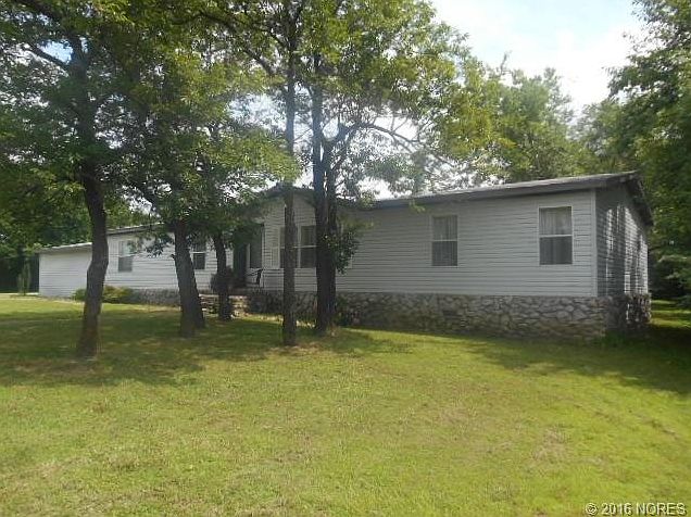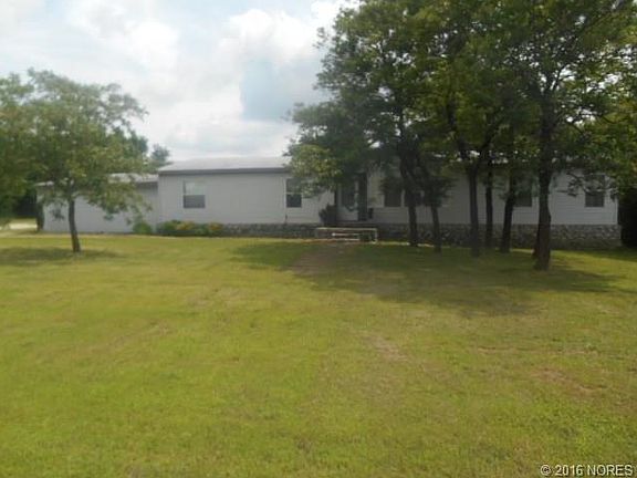 Nice 4 bedroom 3 bath Mobile on 2.5 acres in the Osage Hills. This one owner home has a split floorplan. Large living area w/fireplace, nice eat in kitchen + formal dining. Attached two car garage that includes a safe room.