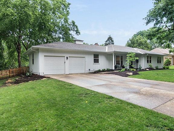 This one is a stunner. Large Open Concept Ranch in heart of JOCO! Kitchen remodel w huge Walnut Island top, 2nd prep sink, floating shelves, quartz counters. 2 large living spaces. Massive room addition off back w tons of windows/skylight. Laundry room off of master. Front porch for sipping your morning coffee. Large fenced flat back yard. Deck and charming brick patio. SO MUCH NEW in last year! New Roof/gutters/High Efficiency Windows/Electric/can lights/appliances/paint in/out, landscaping/doors/and lots more!!
