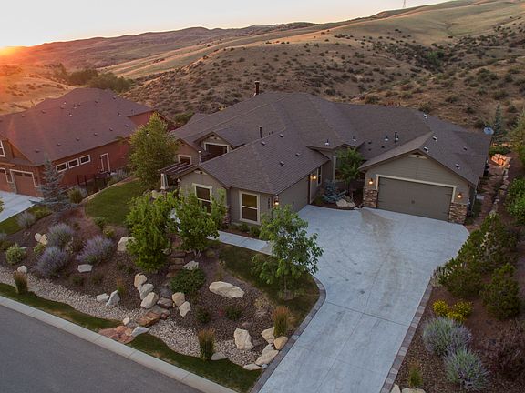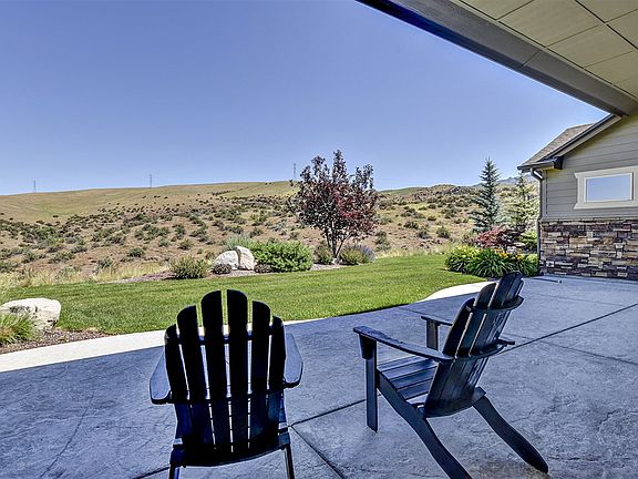 Located on one of the best lots in Hidden Springs overlooking protected open space, with easy access to Ridges-to-Rivers trails! Custom selections in this Sanctuary plan are unsurpassed with 12' ceiling height and walls of glass capturing foothill views. Impressive floor-to-ceiling stone fireplace, walnut flooring, a chef's kitchen, surround sound, security system, built-ins at every turn, professional landscaping, covered patio, guest suite, dual garages.