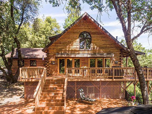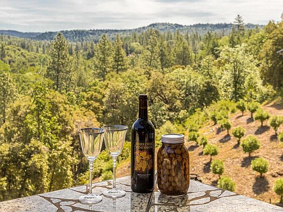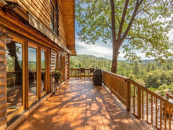 Stunning log style home with gorgeous Sierra views! Located at the end of a private road, ultimate mountain retreat, yet minutes to Downtown Placerville & Highway 50. Sunrises & the sound of Weber Creek running through. Beautifully maintained inside & out, views from the great room & kitchen, main level master w/ view and deck access, large bonus room, loft, fenced areas for animals, 3 outbuildings, extra large detached 3 car garage/workshop w/ half bath, unfinished basement area with many possibilities. Expansive decking has large black oak providing shaded canopy all day, hot tub, wine bar, perfect for a entertaining, family gatherings, holidays, weddings... Every inch captures the ambiance of this unique property. Want to dabble in wine making? Personal vineyard (230 vines) on drip lines or possibly contract out with many local wineries & wine makers. Olive orchard (40 tree & low maintenance). Jar for those late night martinis or olive oil? Or just enjoy the scenery. DREAM PACKAGE!