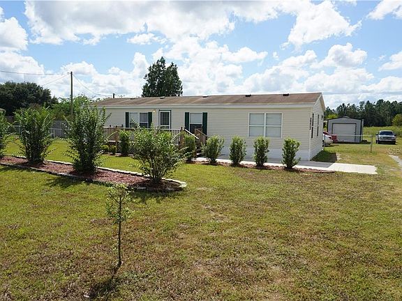 Well maintained home in a country setting! 1440 sq. ft. home sits on almost half acre, fenced in, with plenty of room to play and for pets to run. Home boasts a newer renovated kitchen (2018) with range, refrigerator and microwave, newer flooring (2018) and newer front porch, rear porch with ramp, and newer AC (2014). This home has two master bedrooms, an extra bedroom that can be used as a den or office, and a half bath for guests. There is plenty of storage on the premises, one shed measuring 8'x10', another tool shed with electricity 10' x 20' and a steel enclosed garage 20'x20' with space for 2 cars. No HOA or CDD! This home is a must see!