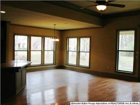 Open floor plan with walls of windows overlooking covered porch and huge back yard. Kitchen features granite counter tops, island/breakfast bar, stainless appliances, and loads of custom cabinets. Living room has 10 foot ceilings, triple crown moulding, and wood floors. Walk-in closets throughout. His and her vanities as well as jetted tub with separate shower in Master suite. Huge laundry room with lots of cabinets, folding counter, and enough room for a freezer. Nook in hallway off kitchen is perfect for the family computer. Oversized garage with huge boat port. Hollywood bath between bedrooms. 90x200 lot.