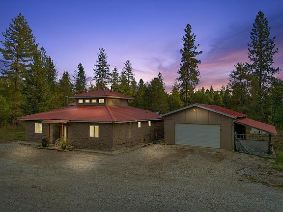 Welcome to a Spanish twist, hidden in the trees. This sprawling one level rancher with 2,520sqft is waiting your discovery. Sitting on a very private square 10 acres with 4 Bedrooms and 2 full bathrooms plus a 2 car shop/garage. Open beams and original wood entryway open to the cathedral ceiling living room. The open concept of this build and newly remolded kitchen will have you loving the outdoors and in. There is an RV covered parking with electricity and water already built in. The home is built in a straw bail technique that is know to be energy efficient in the hot and cold. The acreage is fully treed and level with Fur, Tamarack and Pine. Come find this hidden gem today.