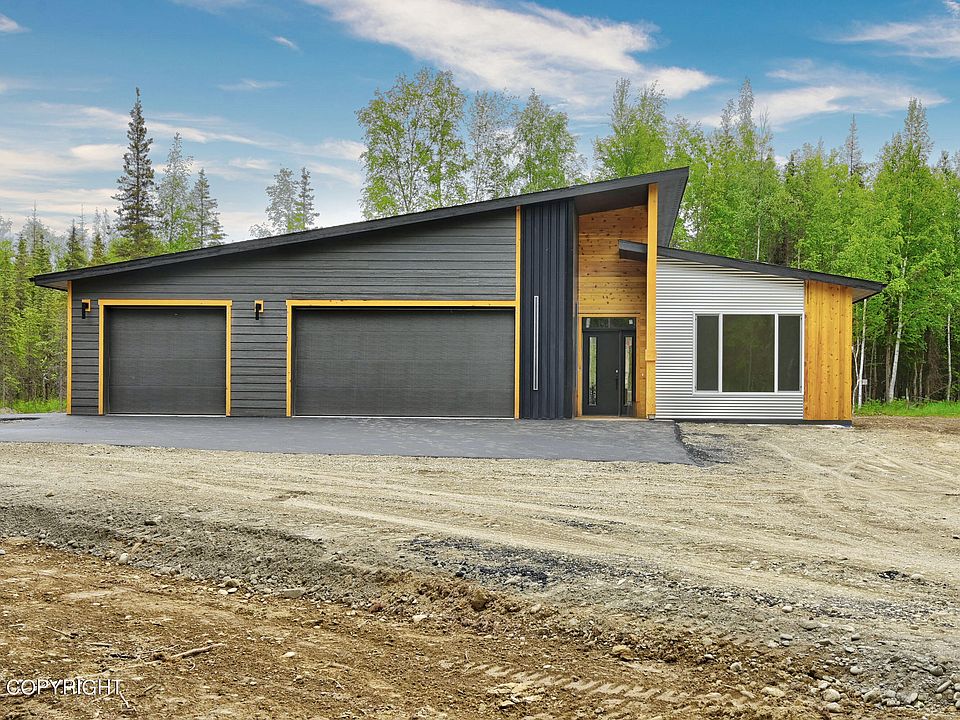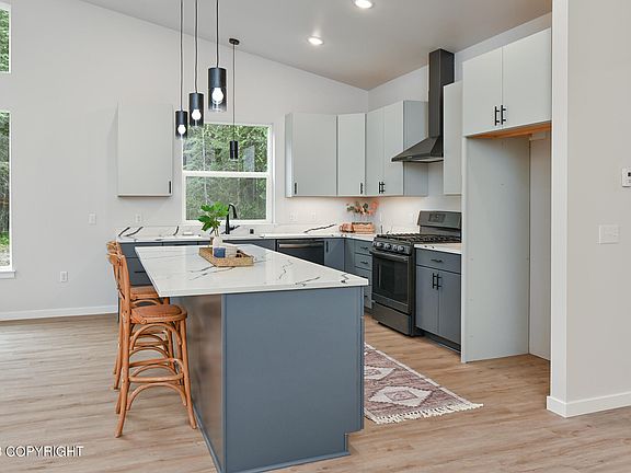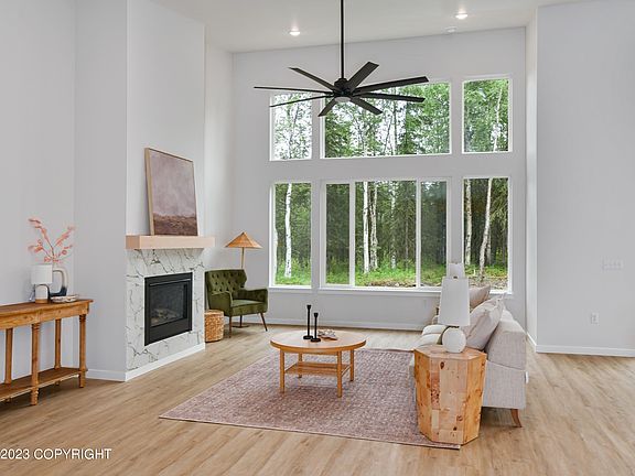 PERFECT mix of Modern & Comfort! Come relax in this New Construction 1976 sf home on a private 1.71 acre lot just minutes from Soldotna. Luxury is seen everywhere from the Quartz counters, custom tile shower, gas fireplace, tall ceilings & huge windows. Enjoy the HUGE 886 sf attached garage, paved parking area & custom stamped concrete patio 14'x14'. Your peaceful oasis awaits!This floorplan works well with open kitchen, living, dining & private primary suite. Great storage, walk-in pantry and three car attached garage. Radiant in-floor heat in the home as well as garage. 9' ceilings or taller throughout. 14'x14' custom stamped concrete patio. Covered front porch has same concrete detail. Home comes with a 10 year structural warranty and 1 year builder warranty on the house.