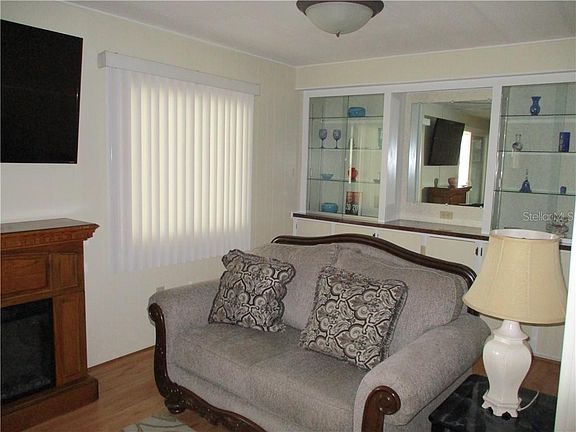 This home is a must see!! Beautiful updated/remodeled 2 bed 2 bath on a cul-de-sac in a wonderful 55+ Park. The floors are laminate throughout, Kitchen has stainless Steel Appliances, Granite Counter tops, Wood cabinets and a very spacious dining area. The living room has mounted flat screen, decorative fireplace and the area has incorporated the formal dining area, with built in cabinets-would be great for an office area. The bedrooms are both very large, and the baths have been upgraded and both have walk-in showers. The lanai, has ceramic tiled floor, vinyl windows, and the spacious laundry is conveniently located there, and offers new washer and dryer, folding counter, lots of storage too! The home is completely and beautifully furnished. AC is less than 1 year old.