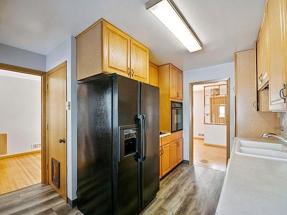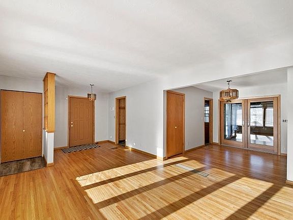 Welcome to this 2 bedroom, 1 bath, oversized 2 car garage home. This home features beautiful hardwood floors through out the main floor. Kitchen has updated LVT flooring. Your dining room leads out to your 3 season porch. It is a great spot to relax spring through fall. There is a nice size fully fenced in backyard. The lower level has lots of room and storage. There is a family room, a work room and office/den, and additional room for study or library. Basement has an egress window for a 3rd bedroom. Come make this home your own.