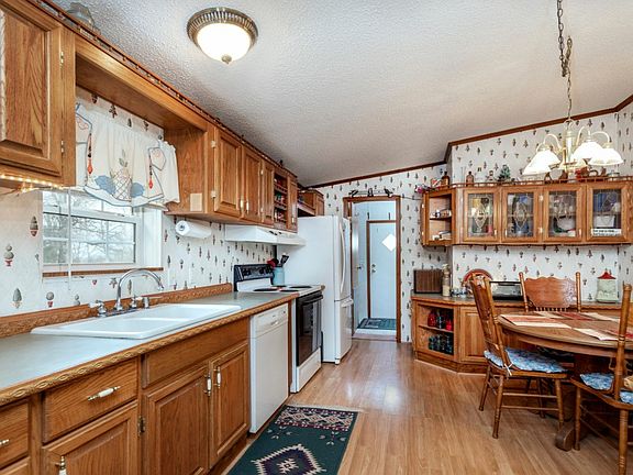 Great opportunity to buy over an acre with plenty of space and storage for the whole family! Custom built MFG home with 6 inch walls. Home has both front covered porch and back screened porch. Circular drive with plenty of space to park. Large detached double garage has additional space for a workshop area with 220 wiring. Property has been well maintained. Property also includes 2 additional power supplied storage areas.