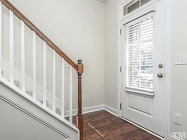 Beautiful end-unit townhome centrally located between Raleigh, Cary, Fuquay-Varina and Garner; just 10 minutes from downtown Raleigh. Built it 2015, this east-facing 2-story, 2BR / 2.5 bath home has many windows that bring in lots of light. Private back patio with room to grill. Beautiful floors throughout downstairs. Each bedroom has a private access bathroom. Downstairs: Granite countertops throughout the kitchen, with an eat-in bar area and large appliances. Ample countertop and cabinet space. Electric stovetop / oven and built-in microwave. Added pot / pan storage rack. Hall closet and additional storage under staircase. Half bath. Spacious pantry with additional storage. Floating shelfs in den area. Sliding glass door leading to patio. Upstairs: Master Suite - 2 large windows overlooking back patio, large bathroom with walk-in shower and dual vanity, two closets for extra storage. Second Bedroom Suite - 3 windows overlooking the entry way, 1 closet, spacious vanity and bathtub. Linen closet and washer/dryer centrally located between the two suites. Pull down ladder access to attic. Energy Efficient, dual HVAC smart thermostats. 2 assigned parking spaces. Ample visitor parking. No smoking. No Pets Rent is for 12 months. All fees and cost are included in monthly rent.