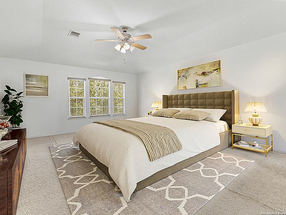 MOTIVATED SELLER! BRING YOUR OFFER FOR CONSIDERATION. CONCESSION AVAILABLE FOR CARPET AND CLOSING. This home offers a spacious backyard-ideal for entertaining or you can transform it into your personal outdoor oasis. Filled with natural light, it combines comfort and functionality in every room. The first floor features a welcoming open-concept layout with a spacious kitchen that includes a dining area, plus both a living room and a separate TV room-perfect for hosting or relaxing with family. Upstairs, the primary suite includes two closets: a walk-in closet off the bathroom and an additional closet in the bedroom. The en-suite bath features a garden tub, glass-enclosed shower, and double vanity. Three additional bedrooms and a generously sized game room complete the second floor, offering plenty of space for guests, hobbies, or a home office. Mature trees enhances the front yard, providing comfort and curb appeal by blocking the morning sun. This home is on Schertz ISD, near Randolph AFB and major roads. The exterior of home has been freshly painted. Don't miss this opportunity to own a stunning two-story home situated on a desirable 0.204-acre corner lot.