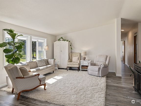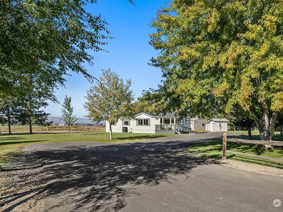 Welcome to your beautifully remodeled farmhouse with stunning views of the valley & majestic Mount Rainier! This home features 3 bedrms, 2 full baths & a spacious open floor plan w/a kitchen that features white cabinets & subway backsplash! Upgrades include a newer roof, flooring + interior & exterior paint, ensuring a move-in-ready experience. Stay comfortable year-round w/a new heat pump (Heat + AC). Outside find your own slice of paradise on 3.13 acres w/a 30 x 24 shop with a concrete floor & electrical, its ideal for projects or storage! 2 Addit. outbuildings. Enjoy the fruit trees & with Town Ditch irrigation, your garden will thrive effortlessly. Paved driveway. Combine rural tranquility with easy access to town amenities!