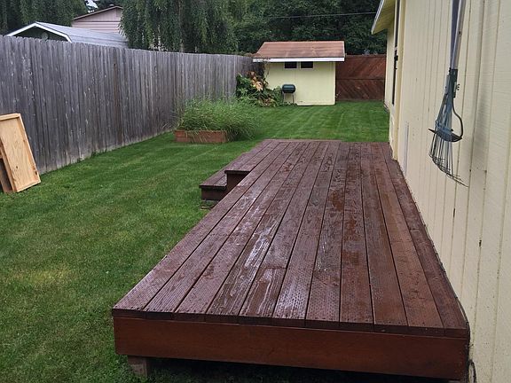 Beautiful Ranch Home Cathedral ceiling with 2 skylights, with lots of windows 3 bedroom 2 bathrooms Open kitchen with counter seating, Open living room with fire place & built in speakers for surround sound Washer & dryer in home, all household appliances included Utilities: Tenant pays gas, electric, water/sewer & trash Huge deck in front of home allowing views of Alaska's Northern Lights & our endless summer days Schools: Trailside Elementary, Hanshew Middle School & Service High School Tenant pay all utilities (gas, electric, trash & water/sewer)
