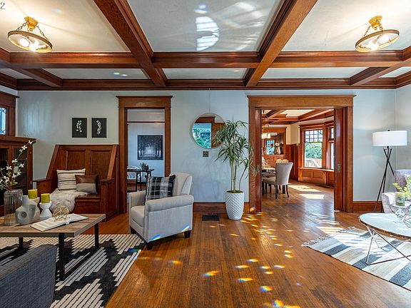 Original craftsman elegance with updates throughout. This Laurelhurst stunner is perched above the street w/ full front porch! Spacious main level w/ primary bed, tall ceilings, hardwoods, original built-ins & trim. Abundant natural light lets the beveled windows sparkle rainbows. Updates throughout: kitchen, primary bath ('22) back deck ('22), upstairs carpet ('22) & fresh exterior paint ('21). Large basement full of potential. Tons of STORAGE up and down. Mature landscape w/ kiwi & apple pear. [Home Energy Score = 2. HES Report at https://rpt.greenbuildingregistry.com/hes/OR10204115]