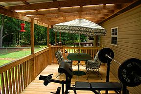 Like new Champion doublewide on permanent foundation with lots of privacy on 10.21 acres with 2 master suites with garden tub/seperate shower/2 sinks/walkin closets in each. Large great room with stone fireplace with blower. Large kitchen with breakfast bar with sink. 2 Covered porches, 3 outbuildings, kids jungle gym, drilled well, paved driveway to home with gravel parking area. Entry gate at road. Creek on property. Newer C/H/A, refrigerator, gas stove, and Honeywell thermostat. Chain link fenced back yard for dogs and kids. Property lines have recently been well marked.