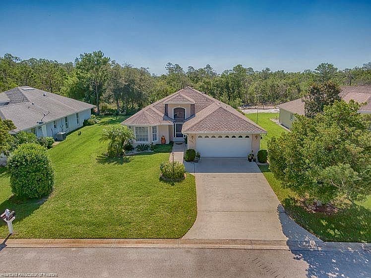 To schedule a showing call Audrey Asciutto, Your Sebring Realtor, direct at 863-273-0308. House alert! Here is a move-in ready home with modern touches in the 55+ Highlands Ridge golf community. The home features a split floor plan and cathedral ceilings which add to this already spacious property. This is a 3/2 and can be used as a 2/2 with a den/office depending on your needs. The spacious master bedroom has two walk-in closets and the bathroom has a double vanity. You'll enjoy these extra touches: New HVAC system with new thermostat, insulated interior Plantation Shutters, new wood-like tile on the lanai, new wood flooring in the living room, new refrigerator with ice dispenser, new dishwasher, new kitchen sink, Aquadana water filtration system, aluminium awnings outside of the dining area for extra cooling, new screened-in front entry, new modern chandelier and ceiling fan, new keypad on the garage, and more. This home is truly move- in ready. If you have been looking at a 55+ community this is the home for you because you don't have to be a golfer to enjoy this community! There is plenty more to enjoy including pickleball, tennis, nature trail that leads to the community dock on Lake Bonnet (great for fishing!), gym, game room, organized parties, and, of course, relaxing by one of the two pools!