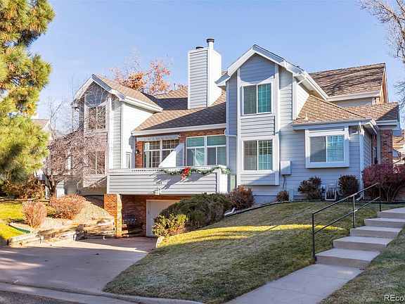 Meadow Hills townhome-style condo with golf course views! French doors open into a light and bright, open floor plan featuring vaulted ceilings, fashionable fixtures, and luxury vinyl tile flooring centered by a beautiful gas fireplace. In the dining area, a patio door opens up to a side deck overlooking hole #3! The fully equipped kitchen features custom maple cabinets, granite countertops, and stainless steel appliances. A bedroom with two closets, a full bathroom and a laundry room complete the main level. Up the stairs and your find a spacious loft area perfect as a flex room or office. A large storage closet adds to this functional space. Onto the primary suite which includes a generous walk-in closet and an updated en-suite bathroom. Rounding out this super convenient home is the attached underground garage. It features two large parking spots, a large storage room, and another storage room perfect for your bikes and toys. Excellent location within the Cherry Creek School District and minutes to shopping, restaurants, Cherry Creek State Park, Nine Mile RTD station, and the Meadow Hills Golf Course!