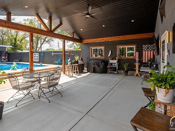 So much to offer! Very well-maintained Shawnee Heights 4 BR, 2 BA ranch. House has been updated with new Smart siding and trim, custom granite countertop and peninsula, glass and metal backsplash, 2 non-conforming BRs in the basement with a second full bath, lots of storage and family room with a gas fireplace. 29 X 40 shop, insulated with central heat and air, plus 12 X 10 overhead door and 14 Ft walls. Shop has its own leased propane tank, 100 amp electric, lots of built in shelving, OSB ceiling/walls and concrete floors. There is also an in-ground pool and pool house. This house has it all! Make it your own!