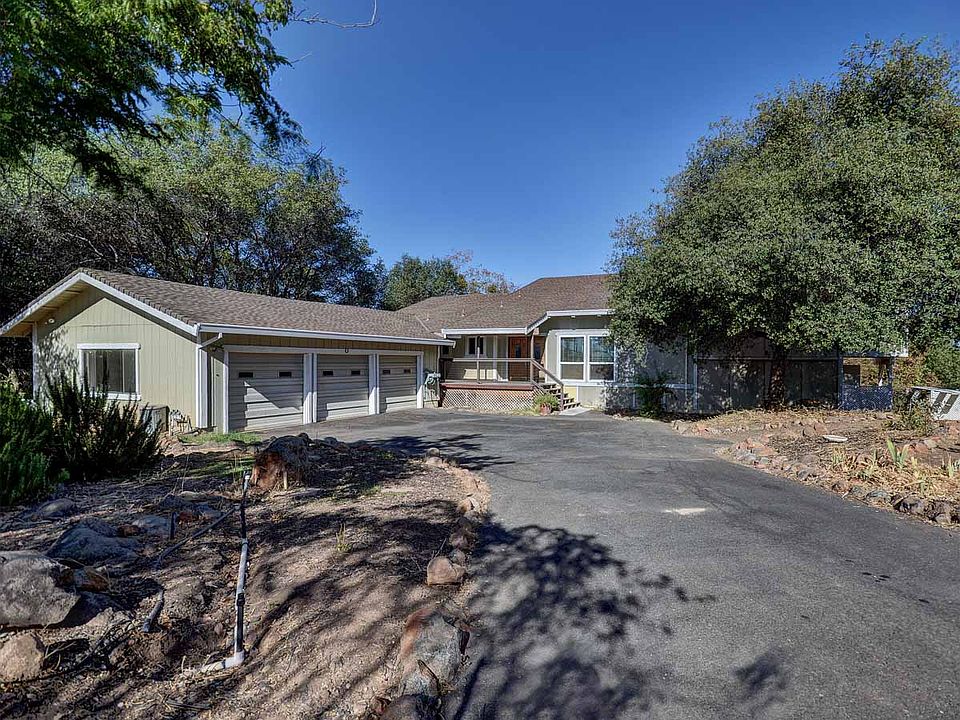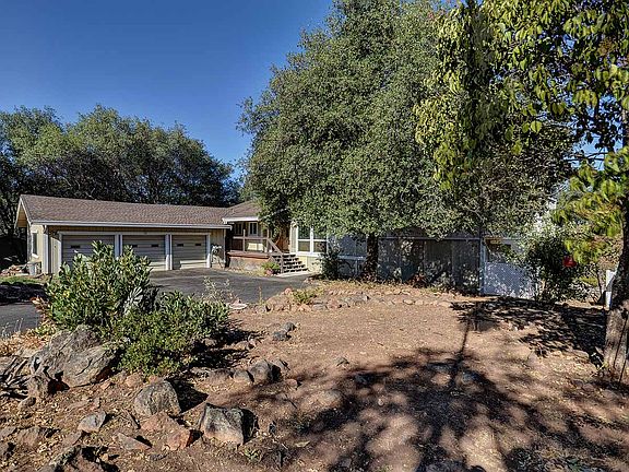 Stunning views in Rescue! NEW GRANITE KITCHEN COUNTERS BEING INSTALLED! NEW PAINT THROUGHOUT! Newer roof, windows and decks. This floor plan is designed for entertaining with a huge dining and living room with vaulted ceilings off open kitchen. Downstairs family room with wet bar, Large master suite is on the main level with deck access. Outside deck, pool, garden paths and pond. Horse set up 2 stalls, large fenced paddock and riding arena, orchard with bearing fruit trees. Gated entry with new driveway. Must see the Sierra views. Check out the aerial Video!