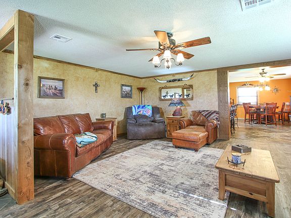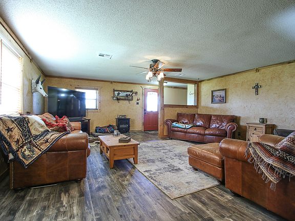 Picture perfect! Don't miss out on this wonderful 2 bed (could be 3), 2 bath home on 13 acres m/l. Enjoy sitting on the covered porch or patio while drinking your morning coffee. Bring your livestock! Property is fully fenced and ready for your cattle and horses. Property features a 50 x 50 hay barn, 20 x 100 barn with equipment area and pipe fenced for cattle, 20 x 40 barn and 12 x 20 barn. Selling as is.