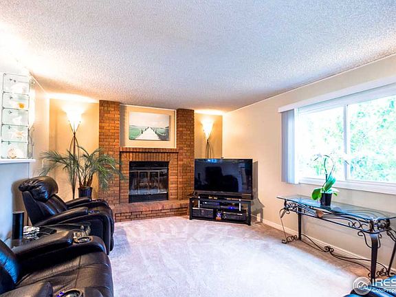 Pride of ownership shows in this cozy, recently updated ranch plan in great Loveland location! Situated on a large corner lot, this home has charm galore! Features include: wood burning fireplace, new tile floors and carpet, updated kitchen & bathrooms, new windows, fresh paint and stamped patio. Finished basement offers huge rec room, 4th bedroom, laundry, bathroom & plenty of storage. All appliances included! No HOA with large, level fenced lot, great for storing all of your toys!