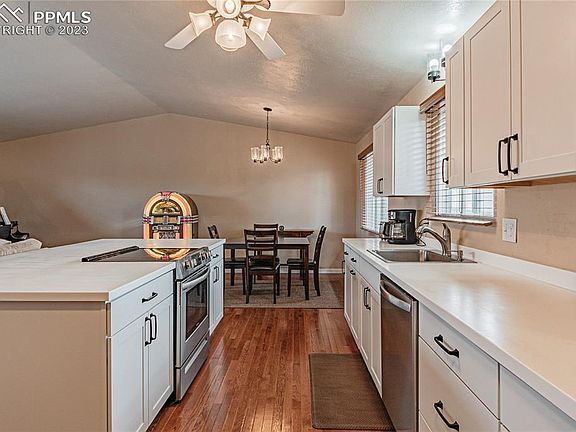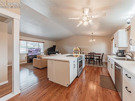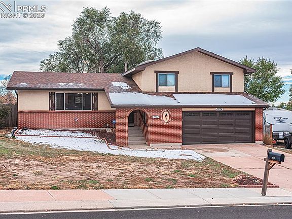 Step into your dream home with this enchanting Tri-level gem! Explore every nook and cranny of this stunning 3-bedroom, 2.5-bathroom oasis, complete with a spacious 2-car garage and a fully finished basement. By using our 3-D tour. As you enter, you'll be greeted by a flood of natural light, courtesy of vaulted ceilings in the living and dining areas and a beautiful hardwood entryway. The open-concept kitchen boasts sleek stone countertops, creating a modern and inviting atmosphere. Venture upstairs to discover three charming bedrooms, all adorned with beautiful hardwood flooring. The master bedroom includes a private 3/4 bath, while the third bedroom's deck offers breathtaking mountain views, perfect for savoring your morning coffee. The main bathroom on this level even features a skylight, adding a touch of elegance. The lower level of the house offers a walkout to a sprawling backyard, adorned with mature trees and a sturdy fence, plus a convenient shed. The family room on this level features a cozy gas fireplace, perfect for those chilly Colorado evenings. The level just below the family room is a versatile space that could be transformed into a recreational room, potential 4th bedroom, or whatever suits your family's needs. The very lower level houses the utility room, providing ample space for your essentials. While this home could use a touch of updating, it already embodies everything you could wish for in your ideal home. Don't miss the opportunity to make it yours! Located close to the powers corridor, this property ensures all your shopping needs are within easy reach, and it's just a short 10-minute drive from Peterson Air Force Base. Schedule a viewing today and let this incredible home capture your heart!