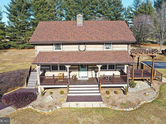 WELCOME HOME! This custom log home is situated on a private and lush 3 acre lot in Lovettsville. This 3 bedroom, 3 full bathroom GEM of a home has been meticulously maintained by the original owners. The main level offers hardwood floors throughout (new carpeting installed in dining room and living room as owner preference), updated kitchen with ceiling fan, beamed ceiling, silestone quartz counters, and new appliances. The dining room offers ceiling fan with light and beamed ceiling with french door to side deck with pergola. Spacious living room with stone wood burning fireplace (electric logs in place that will convey). Hand hewned steps lead to lovely upper level where hardwood floors continue throughout. Owner's bedroom offers 2 spacious walk-in closets and en-suite bathroom with shower. 2nd and 3rd bedrooms have bound rugs that will convey. The 2nd full bathroom offers a tub/shower combo. Walk-out lower level offers 3rd full bathroom, laundry room, brick hearth for a woodstove insert, and plentiful storage space...waiting to finished as desired. Roof was replaced in 2015, gutters and downspouts in 2019, all decking replaced with Trex in 2018, Double-Hung Pella Windows, and so much more!! Rest and unwind on the front porch overlooking the front yard and scenic vistas or on the side deck with pergola overlooking the side yard. Enjoy the lower level deck as well!! The expansive shed/barn with loft is great for additonal storage and work space. And don't miss the CHICKEN COOP, too!! Located just minutes away from Historic Lovettsville and close to award winning wineries, farm to table restaurants, the MARC Train in Brunswick, MD as well as a short drive to the C&O Canal Towpath and Potomac River. NO HOA!! Imagine living in your OWN bed and breakfast!! There truly is no place like home.