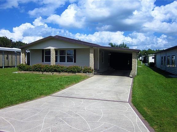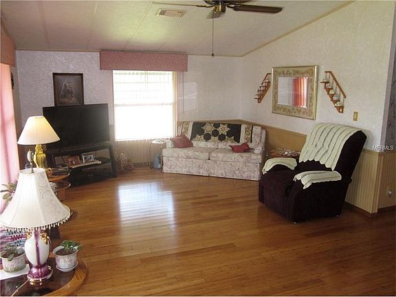 Magnificent home in pet friendly area of Gem Estates 55+ community. This spacious immaculate home offers 2 BR 2 bath where you own your own land with a low HOA fee of $300. per year! The open floor plan features real wood Bamboo flooring in living room, kitchen, and den/study. The kitchen has custom designed center island, dishwasher, refrigerator, range, and upgraded washer/dryer with inside laundry. This home features large covered outdoor patio off kitchen with sliding patio door, extra large workshop 15' x 11' with AC, hot tub in Florida room, extra storage, and metal roof. The master bedroom retreat offers walk in closet, oversized room, and exceptional master bathroom with dual vanity. Guest bedroom offers large room and large closet. The screened Florida room offers covered area for entertaining and cookouts which includes hot tub. Nicely painted inside and out. Outside storage shed for your golf cart and large work shop area. Call for an appointment today