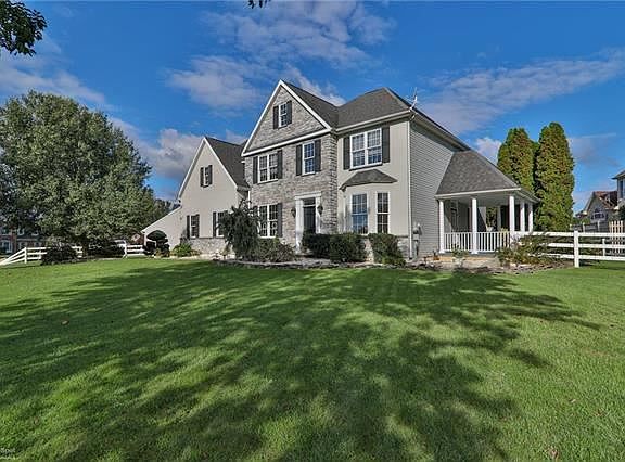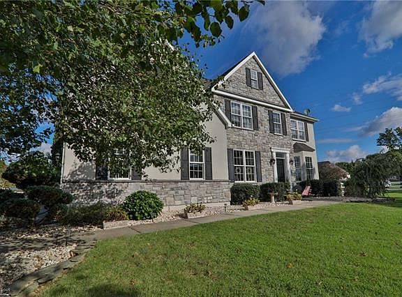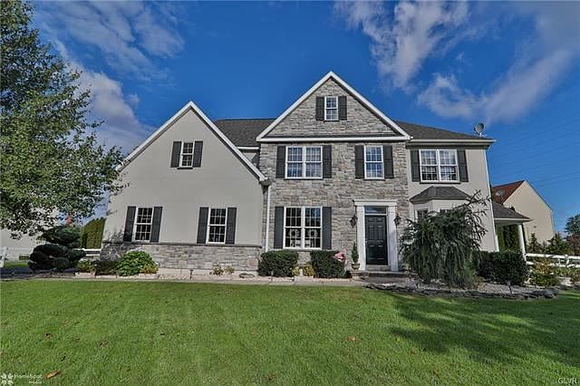 Beautiful Hanover Township Colonial within walking distance to Hanover Elementary School & the Township Community Center. Upon entry feel the vibe of spacious & open concept living. 2 story foyer, dining & living rooms, family room with stone fireplace & access to back deck for entertaining. Eat in kitchen with granite counters, stainless steel appliances, gas cooktop, tile backsplash, recessed lighting. Separate laundry rm & half bath round out the first floor & features hardwood, tile, berber carpets, crown molding and chair rail throughout. Upstairs you'll find a master retreat w/ huge walk in closet, double vanities w/granite, soaking tub. Additionally there are 3 bedrooms one with an en-suite bath and walk in closet, the others share a Jack-n-Jill style bathroom with granite top vanities & walk in closets. Finished lower level, with 1/2 bath. 3 yr Lennox gas heating system, fenced yard w/ deck & side covered patio, 2 car side entry garages. Excellent location close to 22, no HOA.